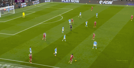 方向上其实还是萨拉赫VS奥赖利这一侧,但是在索博斯洛伊的帮助下顺利打出的,只不过维尔茨的转身射门被曼城轻易堵住。