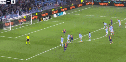 第45+4分钟,拉什福德横传被解围不远,亚马尔迎球劲射破门!塞尔塔2-3巴萨
