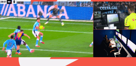 第10分钟,费尔明打到阿隆索手臂造点,莱万主罚命中!塞尔塔0-1巴萨